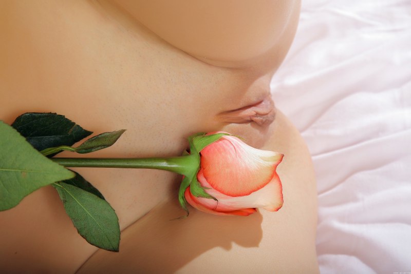 Роза торчит из киски девушки