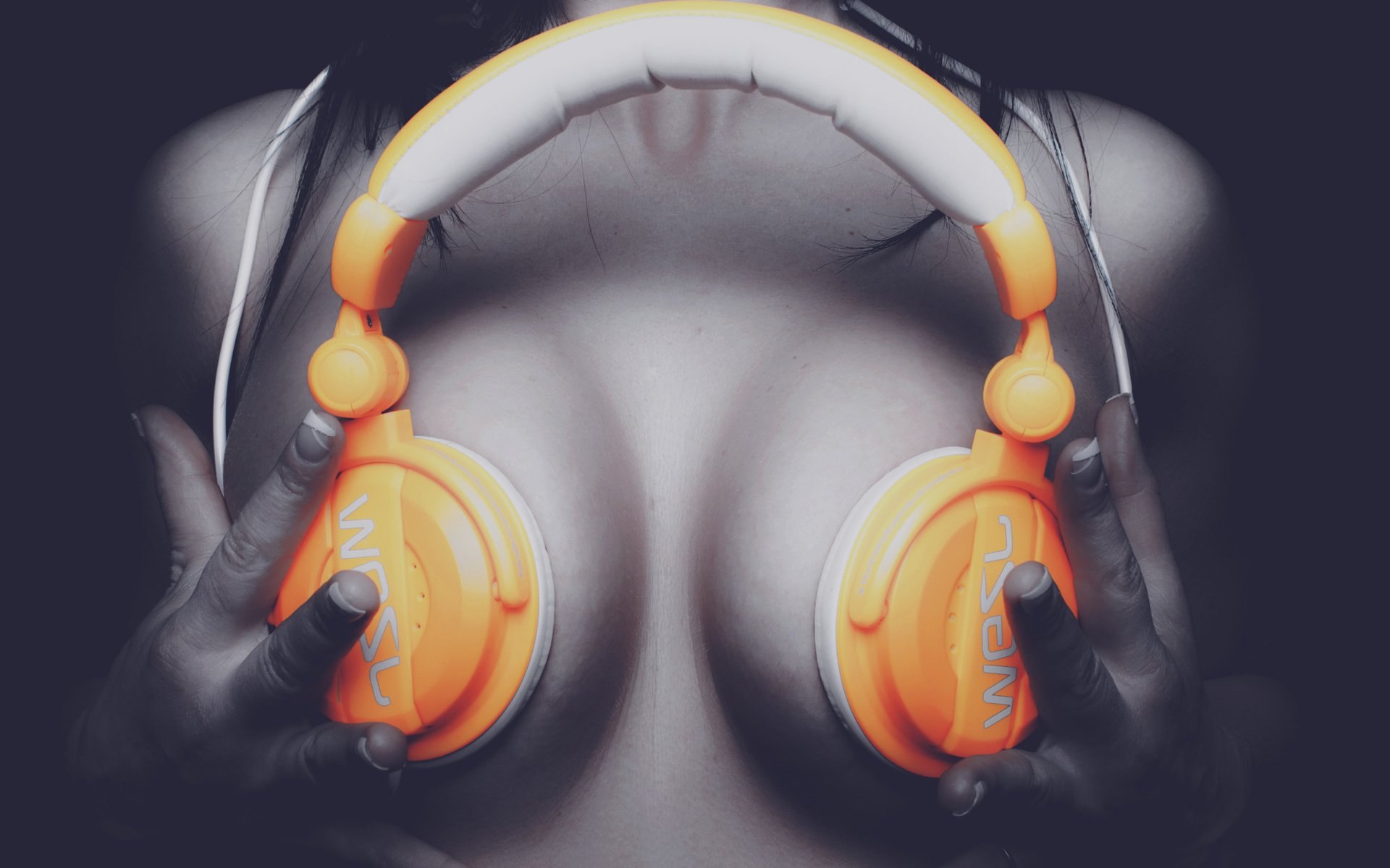 Полуобнажённая девушка наушники