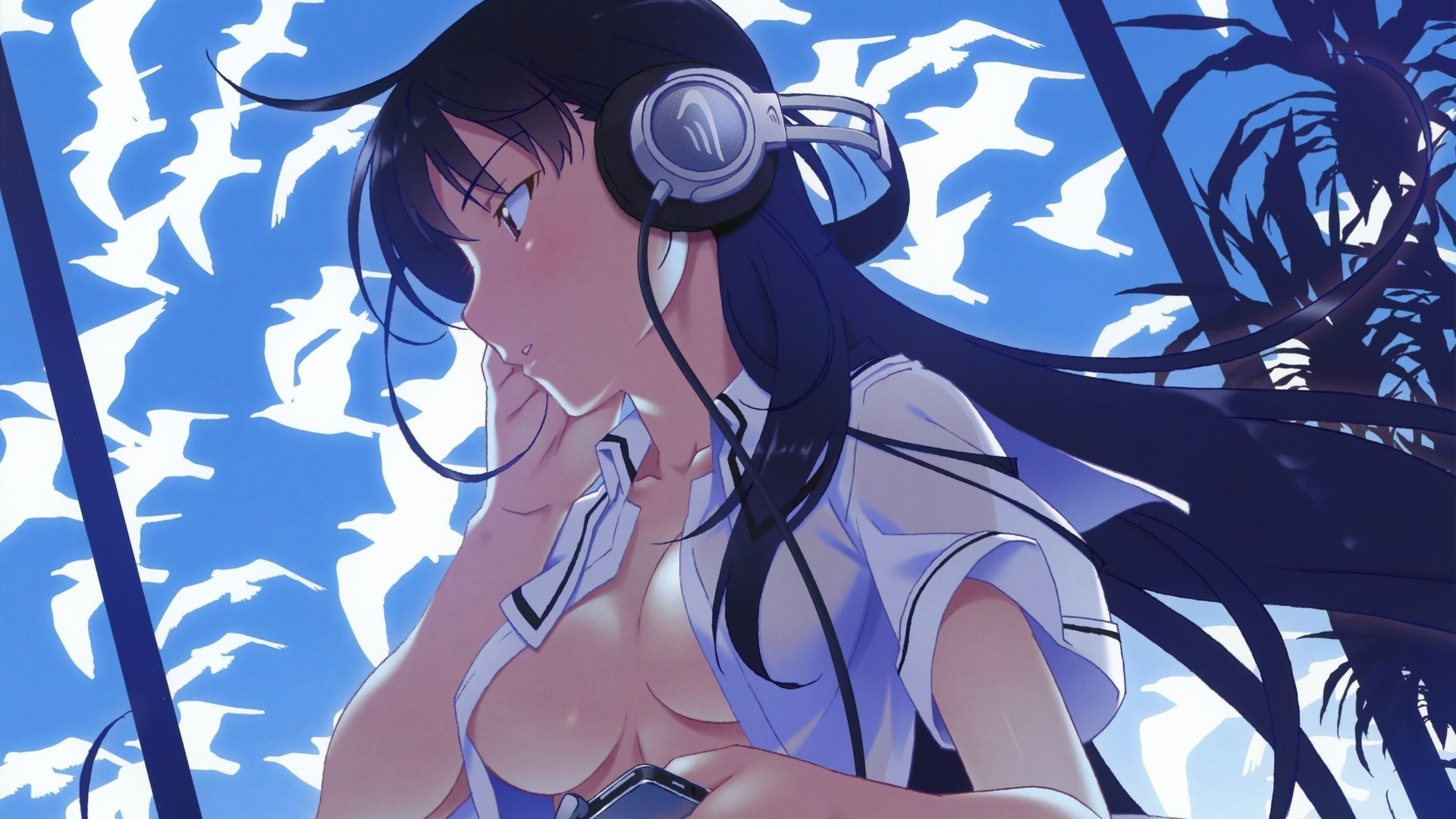 Наушники на шее аниме