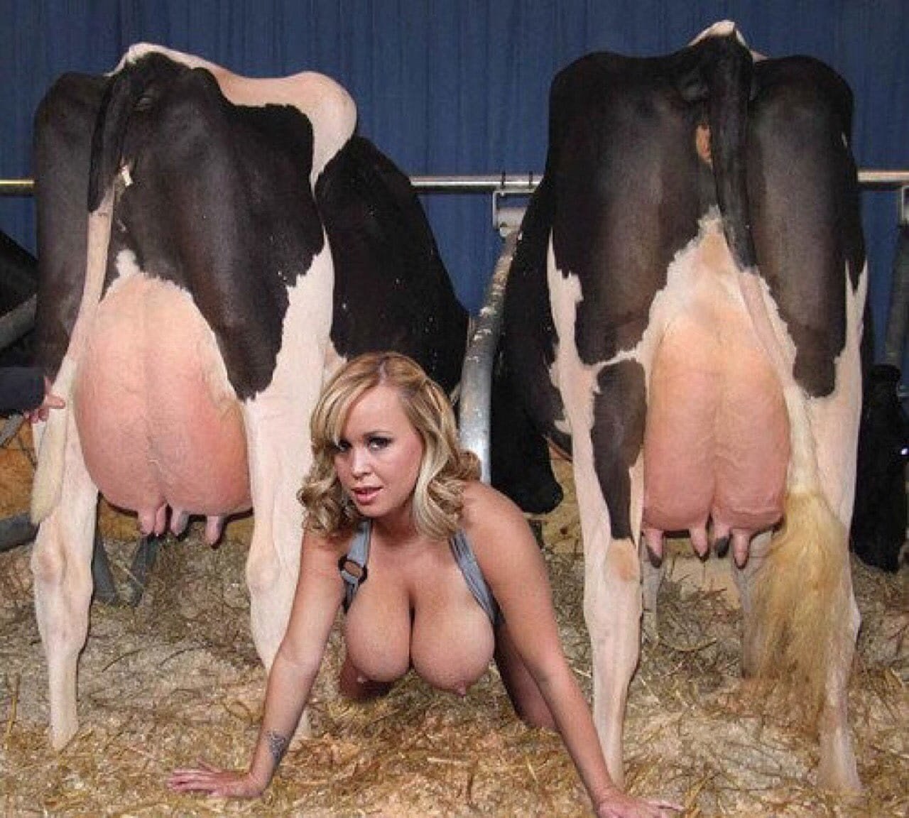 Девушка с коровьими сиськами