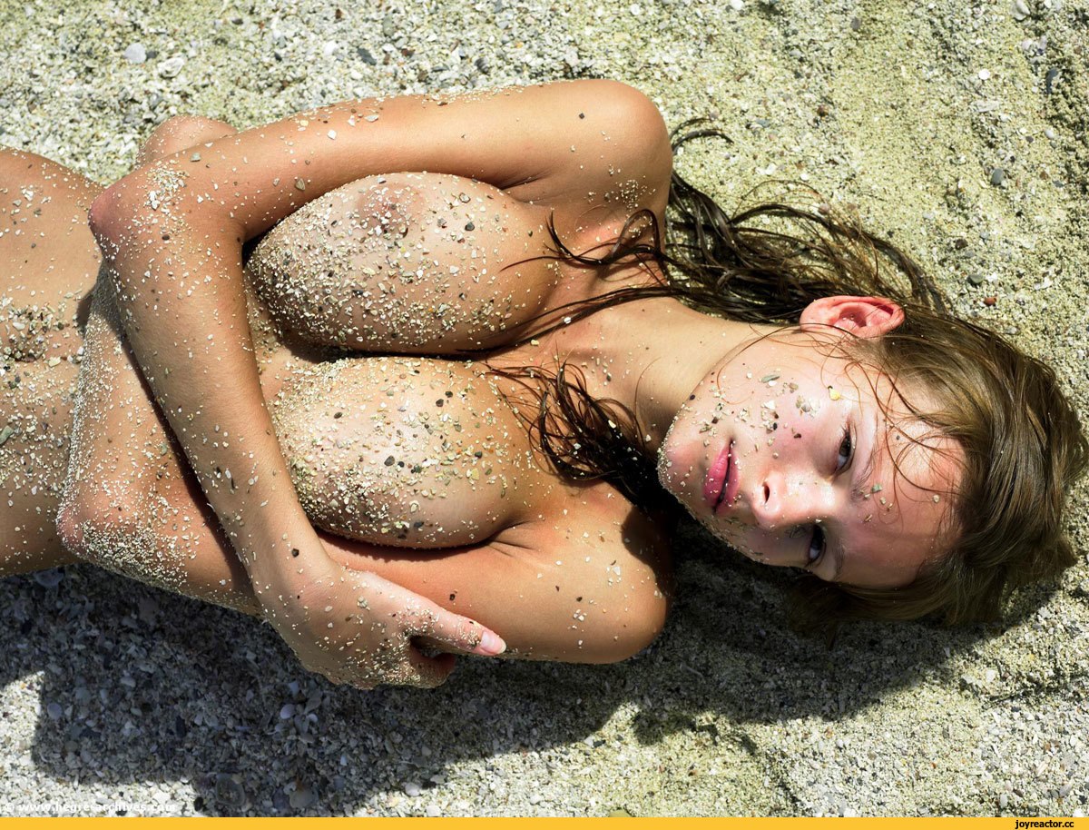 Голая блондинка лежит у воды