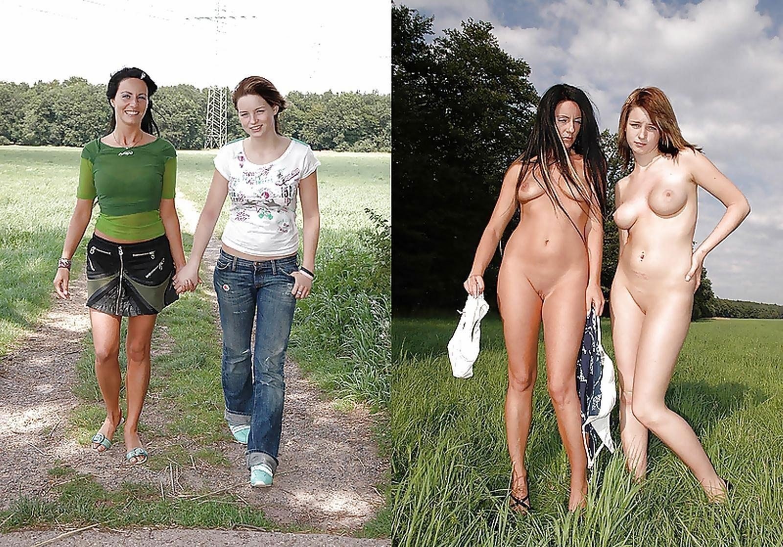 Одетые и раздетые молодые девушки