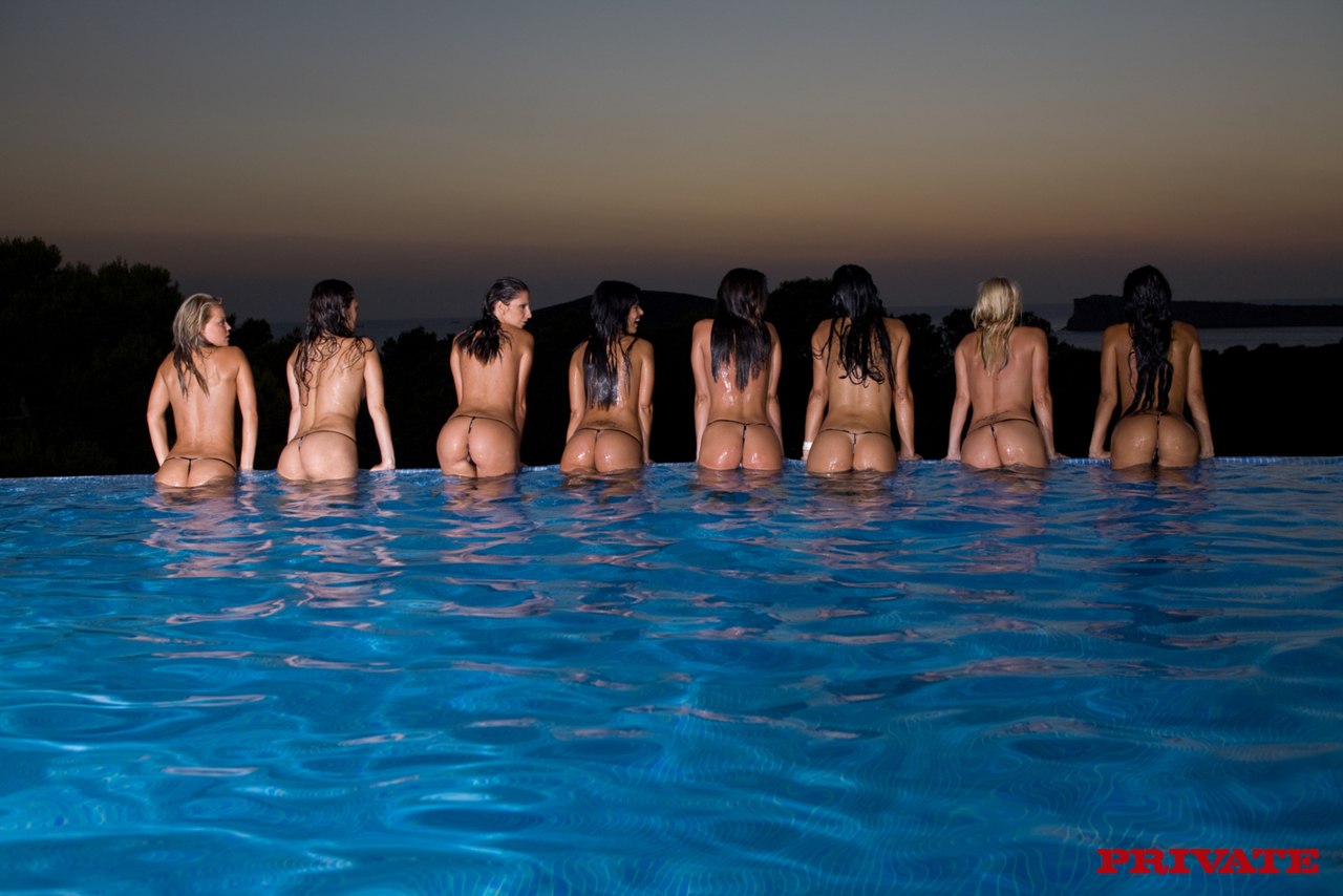 Группа голых девок в бассейне