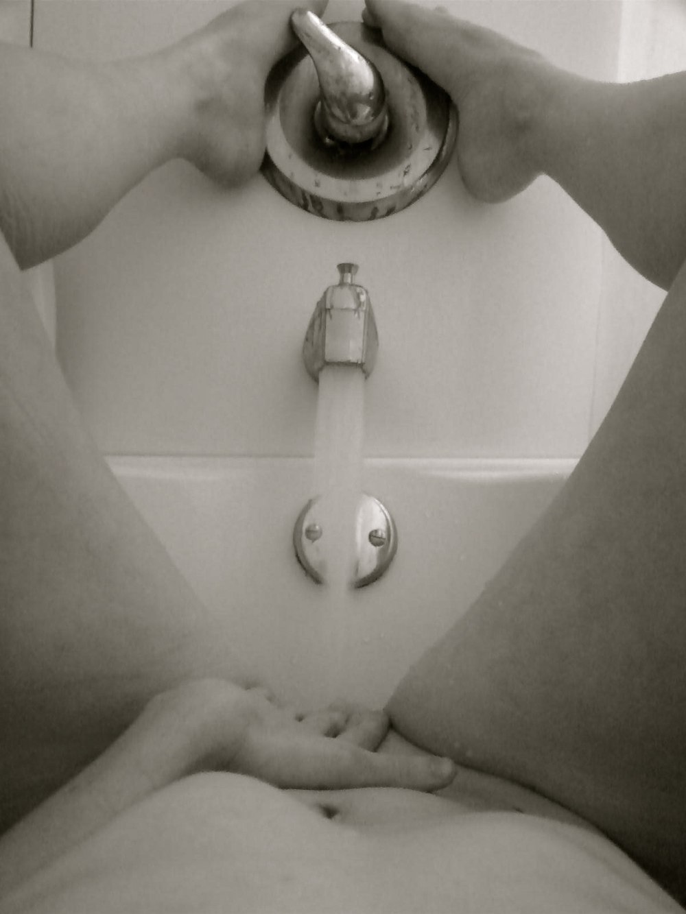 Мастурбация струей воды в ванной