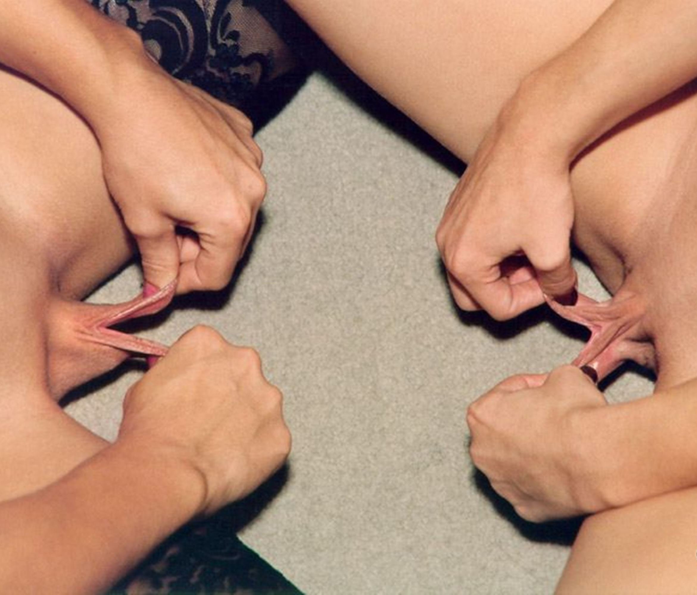 Несколько девушек показывают киски