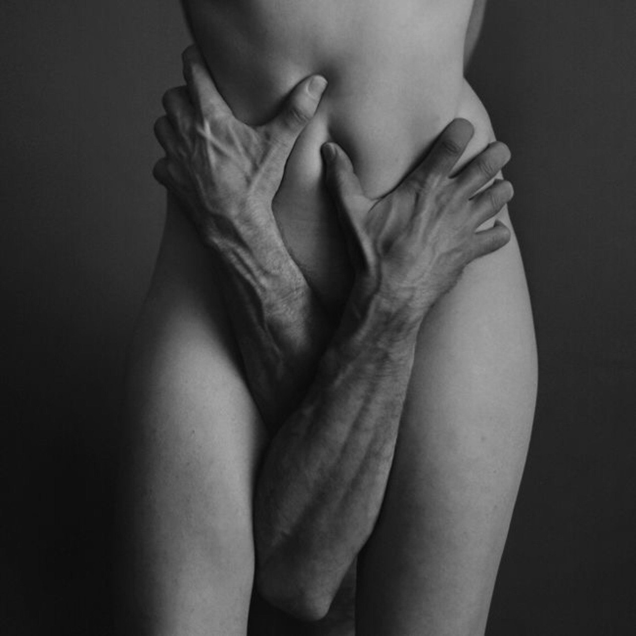 Красивые мужские руки на женском теле
